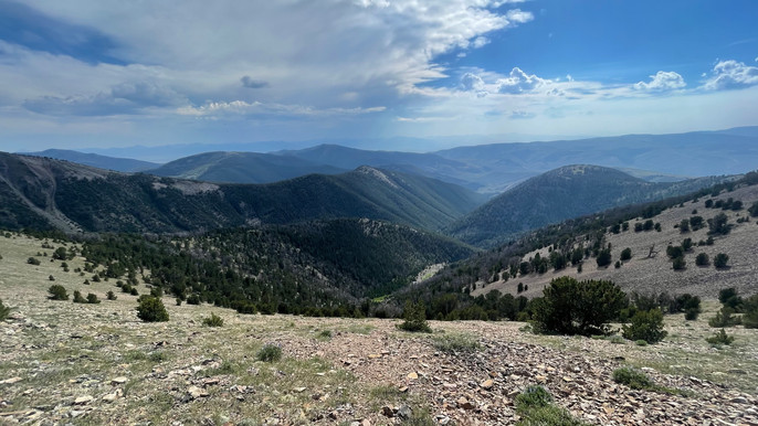 July 28th- up at 0545. Coffee and blogging for the Trek. Took 2 hours. Made FB and Insta posts as well. Packed up and moved to the restaurant for breakfast. Charged my battery some more and scarfed down an omelette. Walked back to the Stage Coach store to wait for a ride back to trail. Walked around asking everyone until I got myself and 6 others a ride back to trail. Gave $ to driver and started from the pass at 1400. Stopped for a safety meeting at only 7 miles and then continued on. Stopped for the night at 2300 with 17.45 miles completed. Made a new high point at Elk Mountain, elevation 10,177 feet.